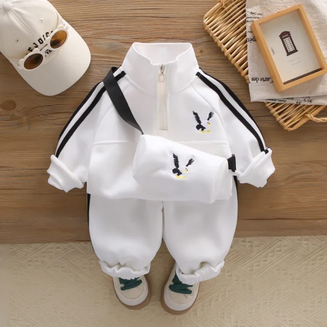 Fresh and Fashionable Boys three-piece Set: Your little man will look stylish and comfortable in this plaid t-shirt, polo shirt, knitted vest, and denim pants set. Perfect for casual spring wear.