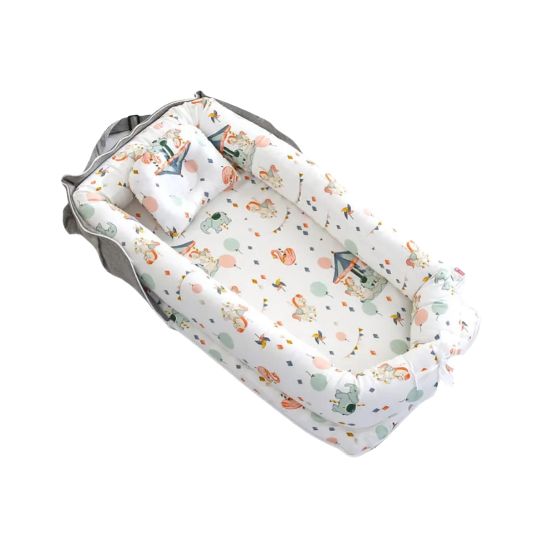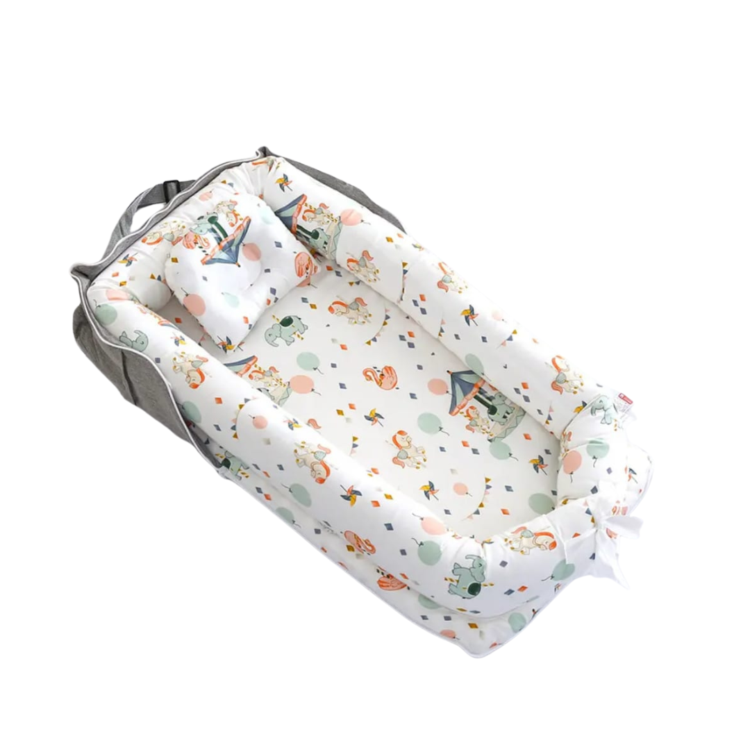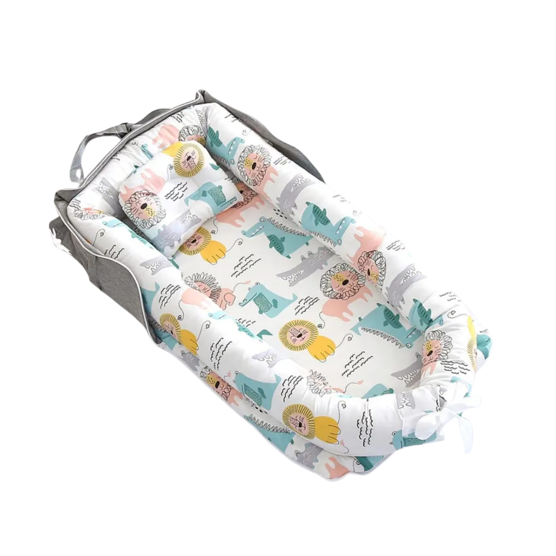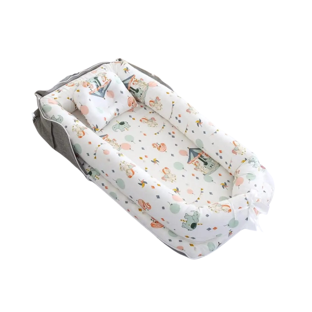 Give your little prince or princess the royal treatment with this luxurious, portable baby nest. Featuring premium hypoallergenic cotton, cushioned side bumpers and a contoured head pillow, it’s perfect for safe, comfortable naps anywhere. The elegant crown design and machine-washable fabric make it both stylish and practical for modern parents.